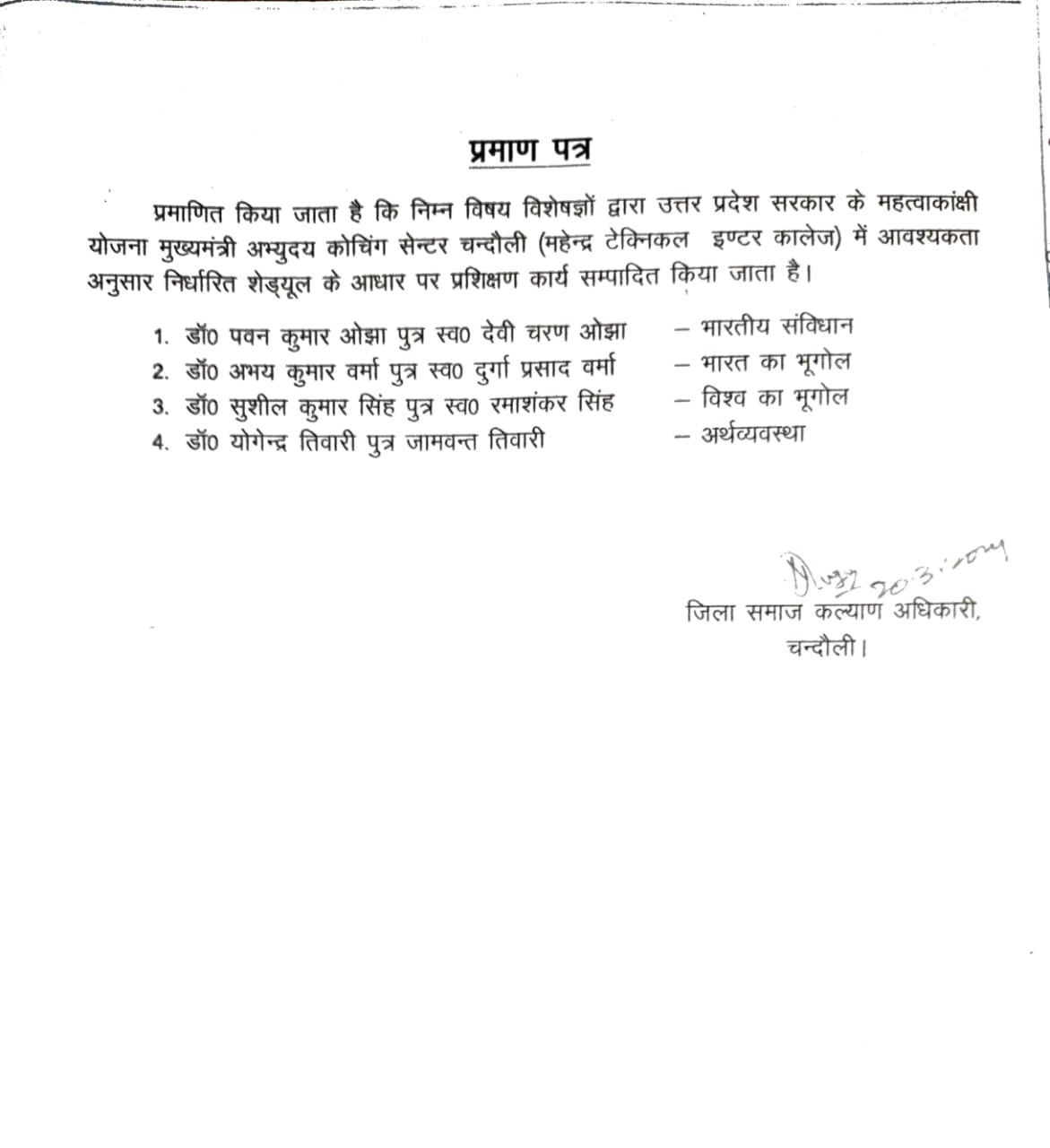 MOU with UTTAR PARDESH BHARAT SCOUT & GUIDE CHANDAULI